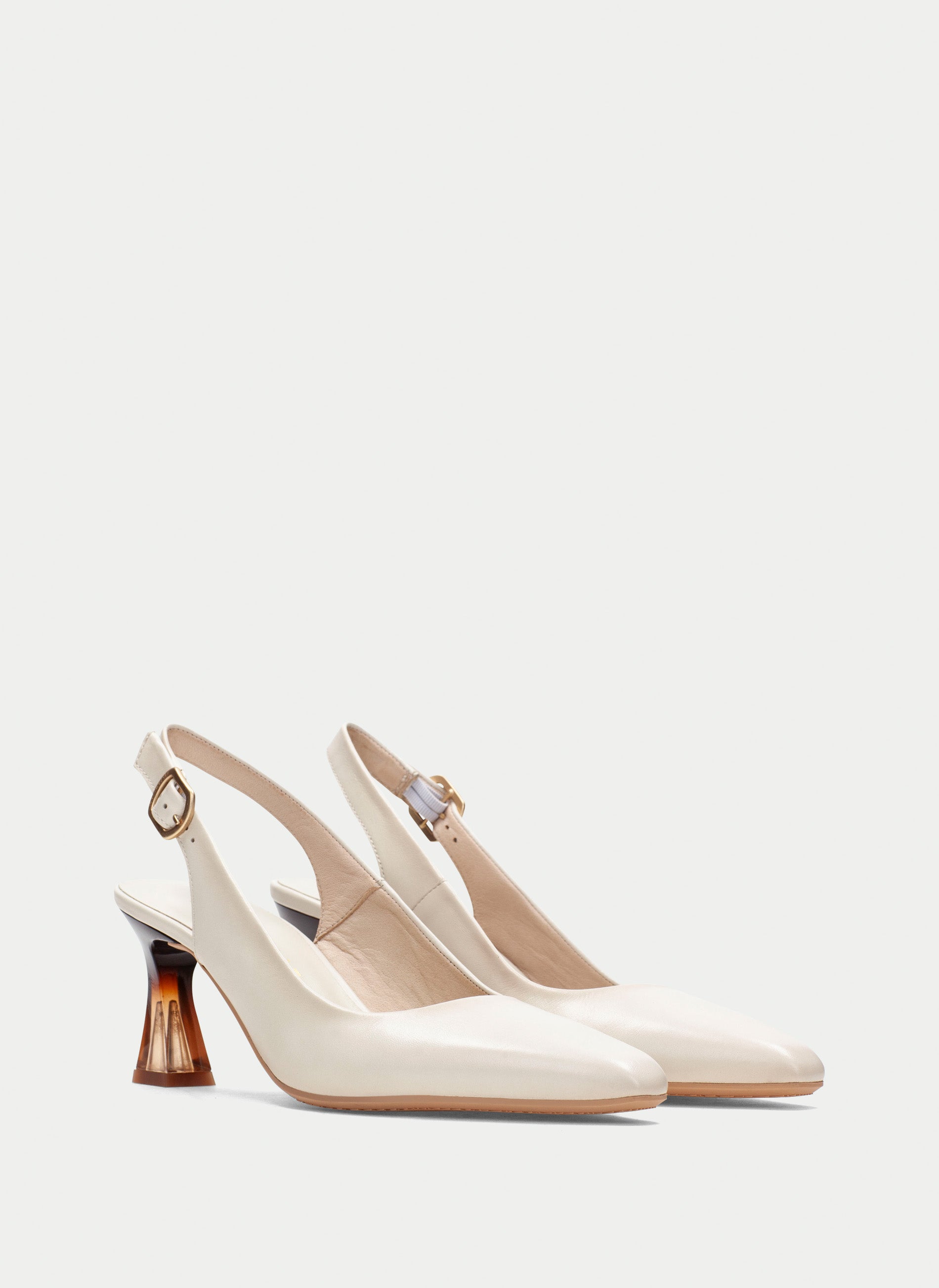 Pointed slingback with a slightly rounded toe and lucite heel, making it a stylish and very comfortable choice. This model incorporates Triflow technology, triple padding that provides a cushioned effect when walking. Height: 6 cm.