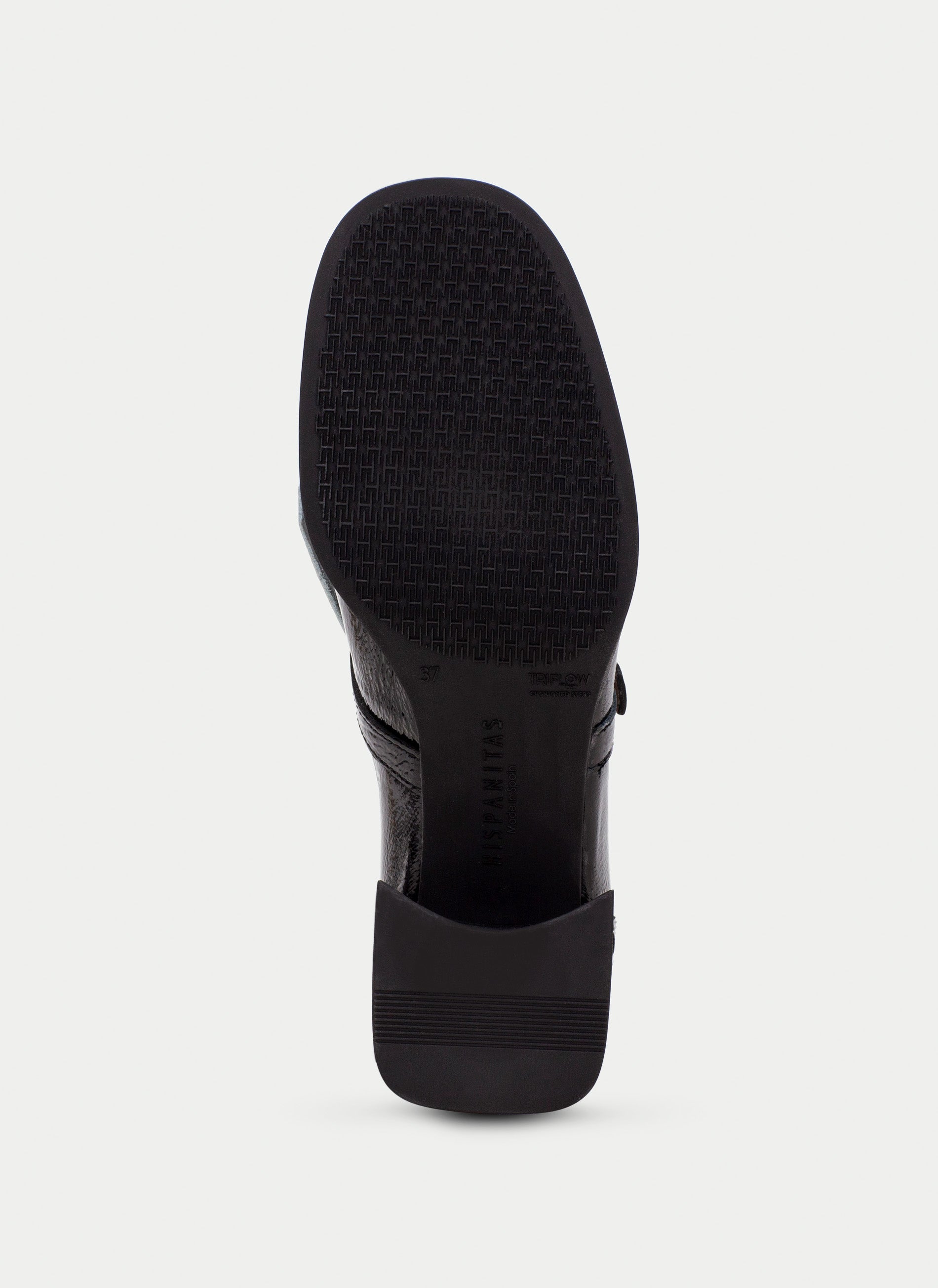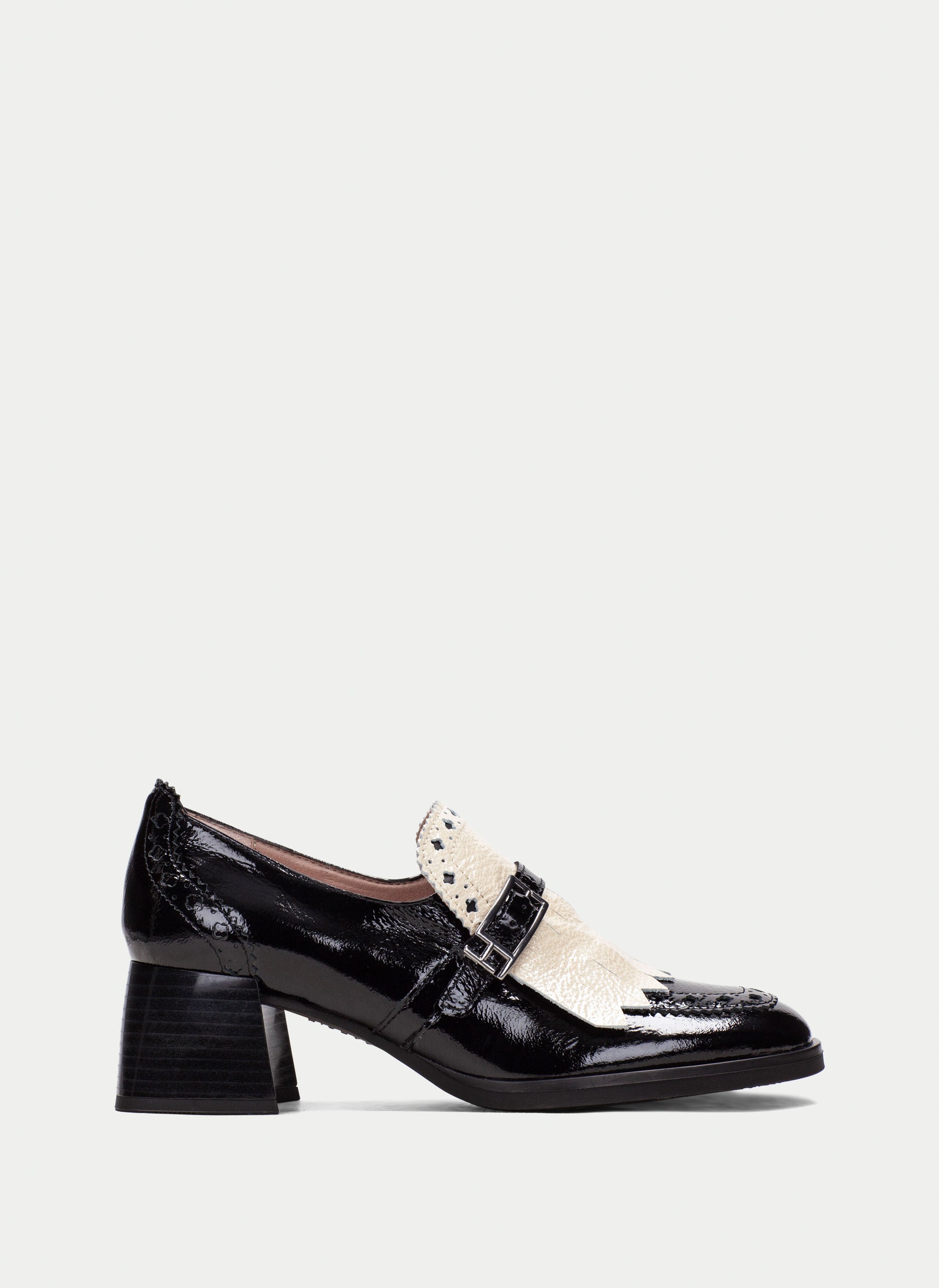 Kiltie loafer with a round toe, 5 cm block heel, and decorative strap. This shoe incorporates Triflow technology, cushioning each step and providing flexibility and comfort thanks to its triple padding.