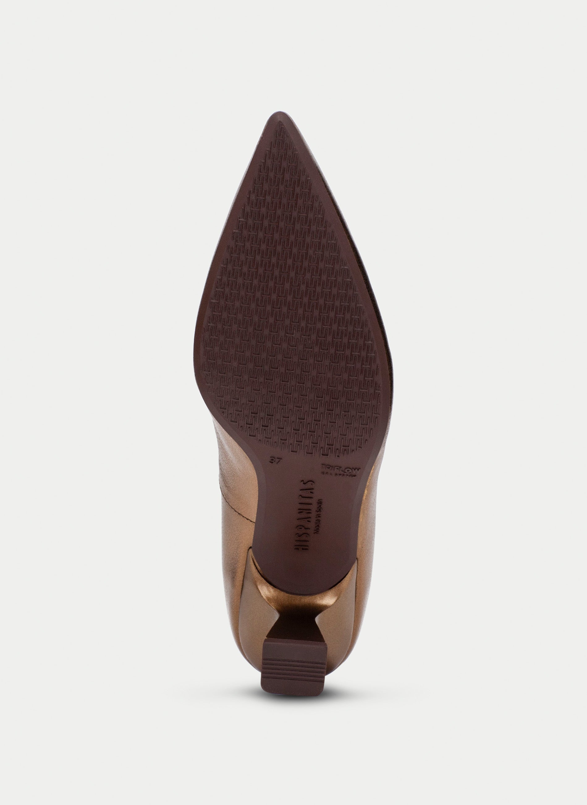 Escarpin en cuir à bout pointu et talon de 6 cm. La technologie Triflow offre un effet matelassé sur la semelle.