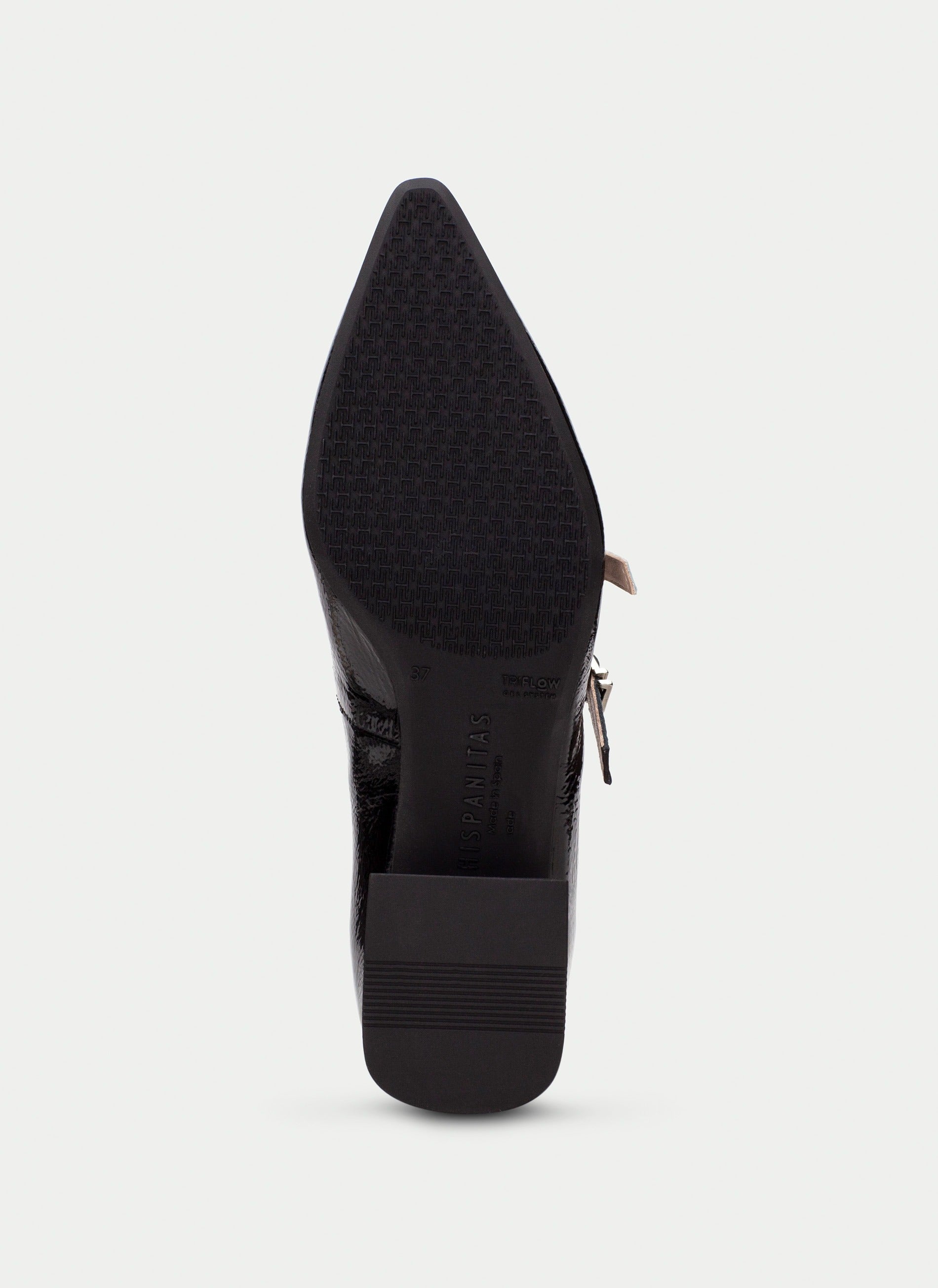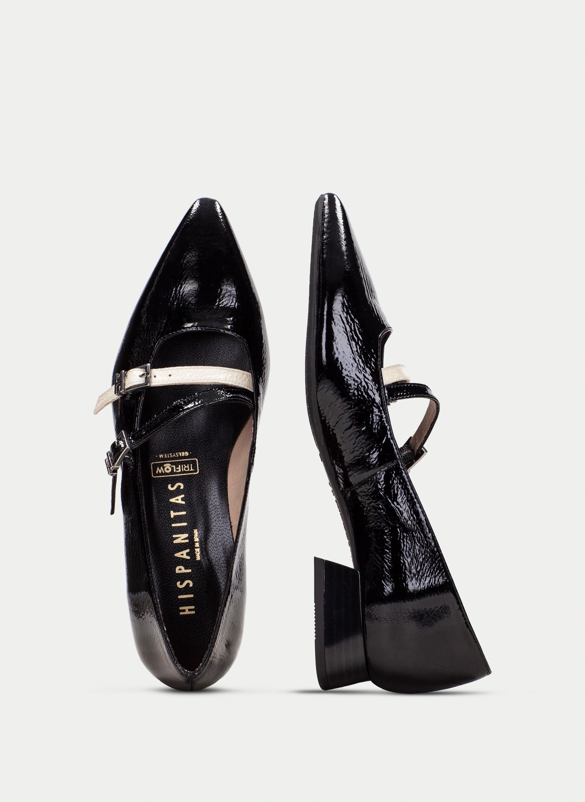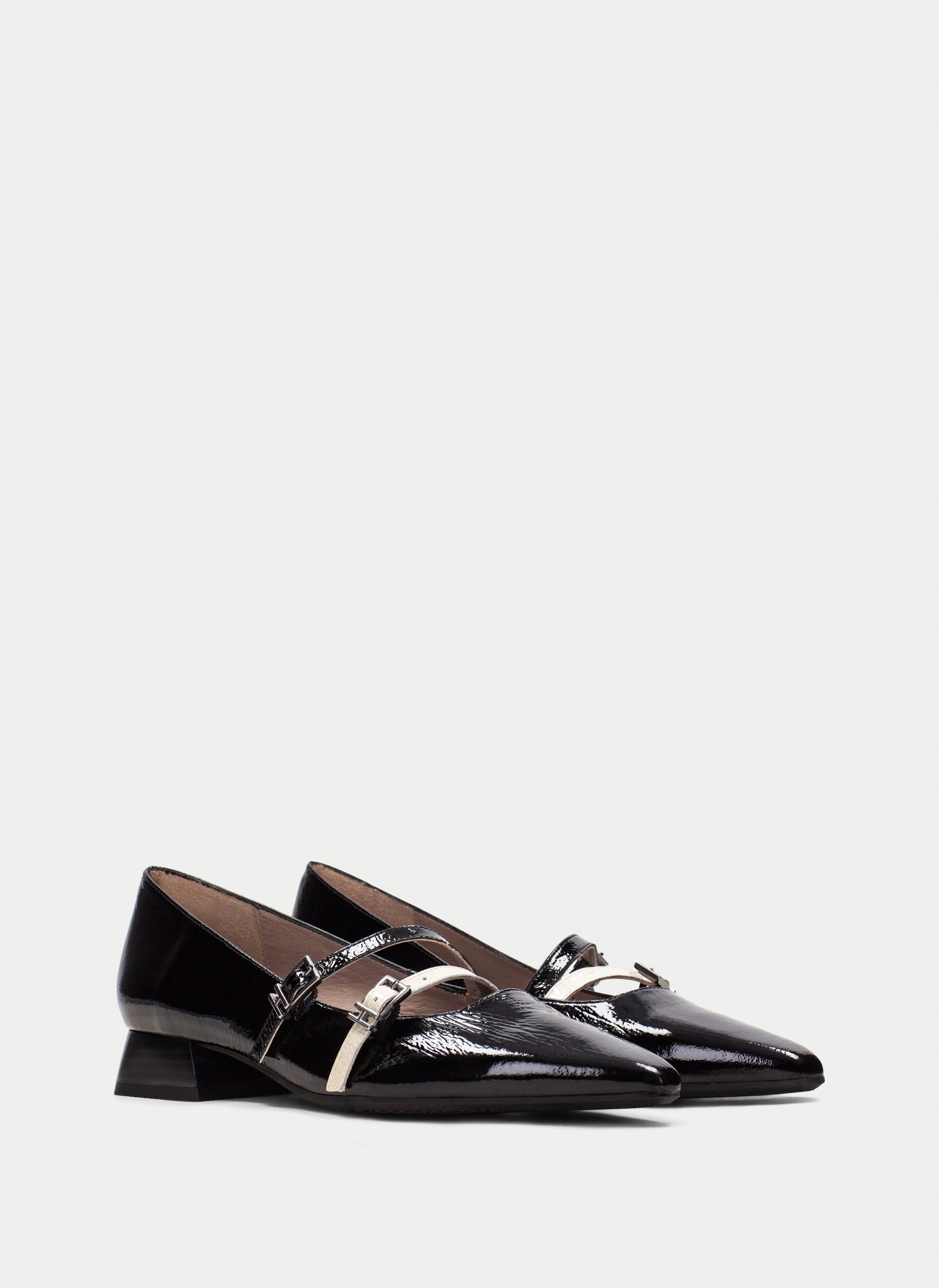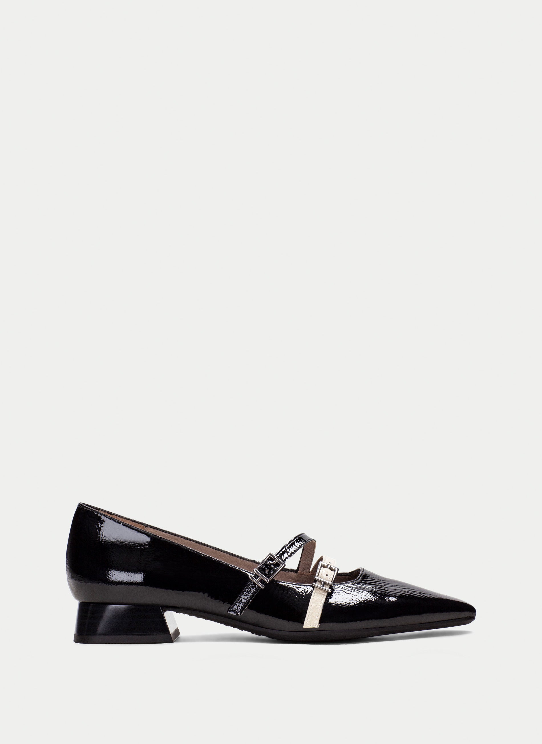 Classic design shoe with a modern touch and asymmetrical strap detail Stylized fine tip Low, 2.5cm wide heel for added stability Made of leather Triflow technology: triple padding in the tread area that absorbs impacts and provides a cushioning effect when walking Ideal for any occasion